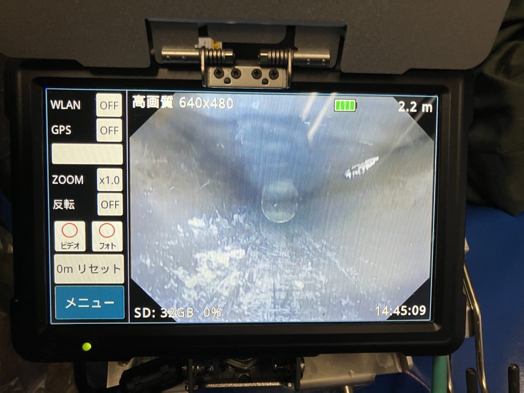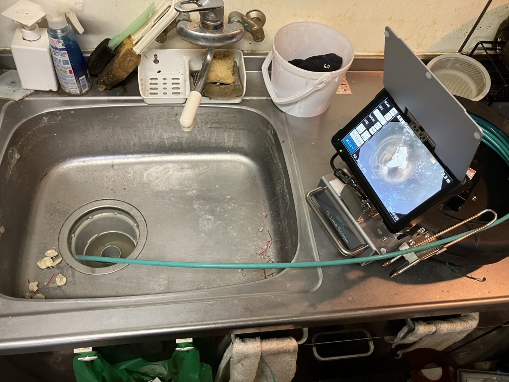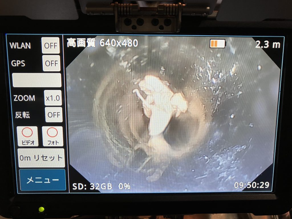 最終的にカメラで確認すると、排水管の勾配不良がかなりひどい状態でした。