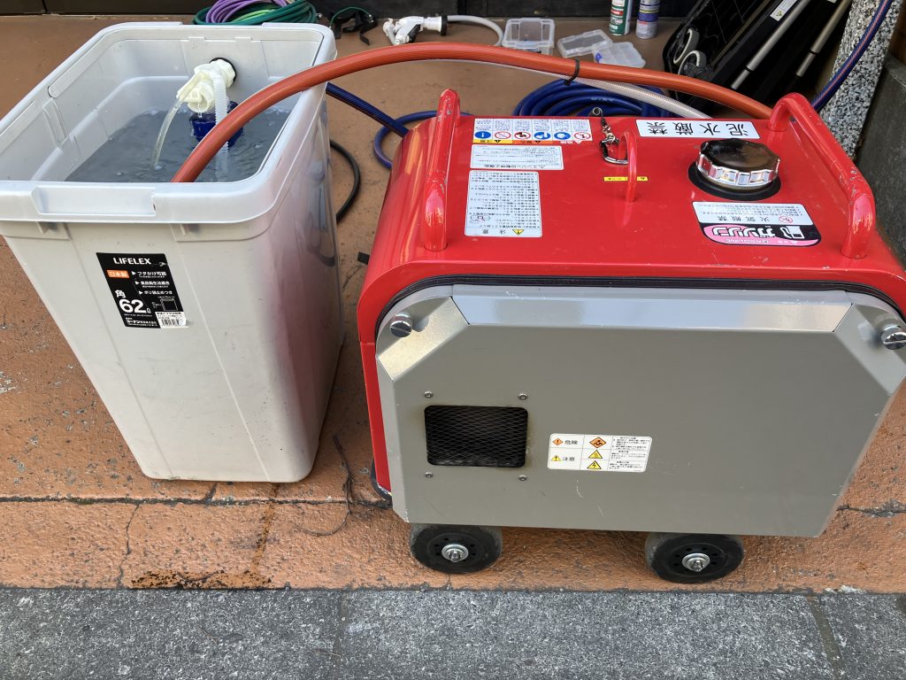 続いて高圧洗浄開始、あっという間にシンクが油まみれになり先詰まりを起こした為ストップし再度トーラー、高圧洗浄、トーラー、高圧、、、。