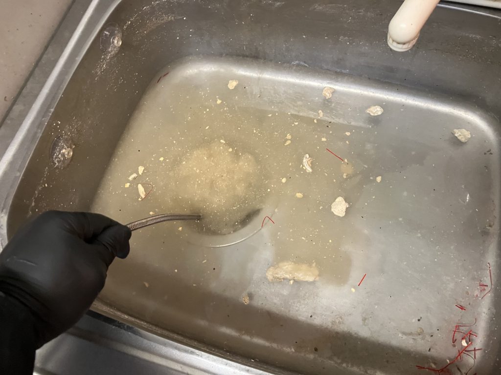 マンションなので下流からの作業は出来ない為、セオリー通りシンクの排水口から攻めていきます。