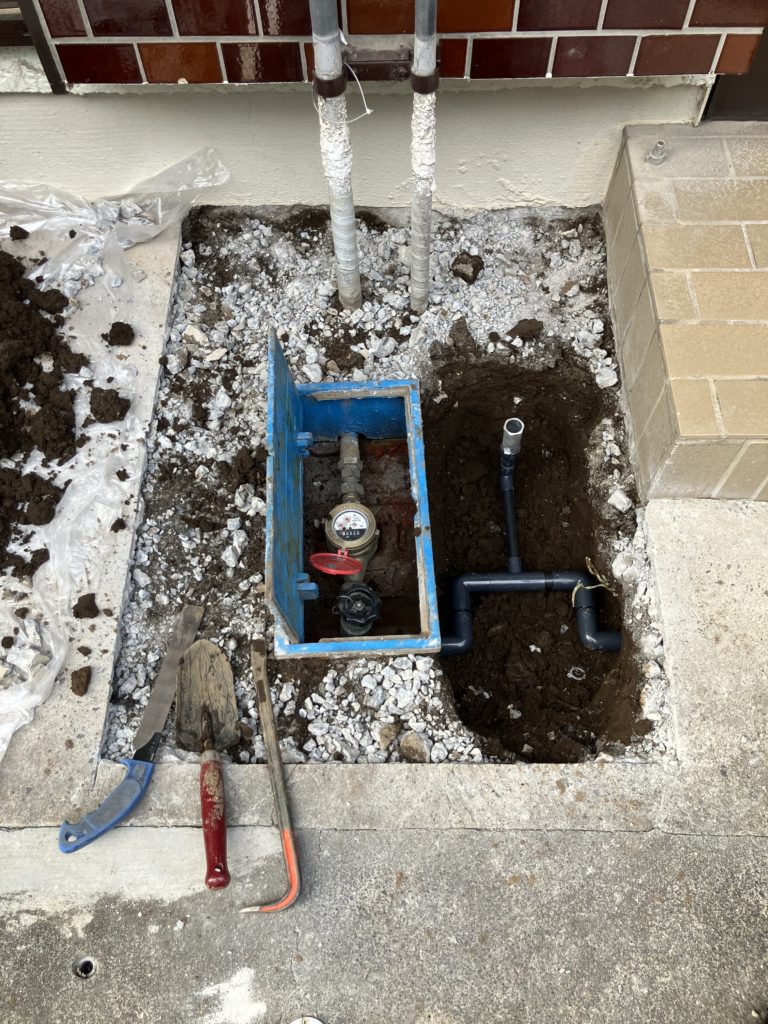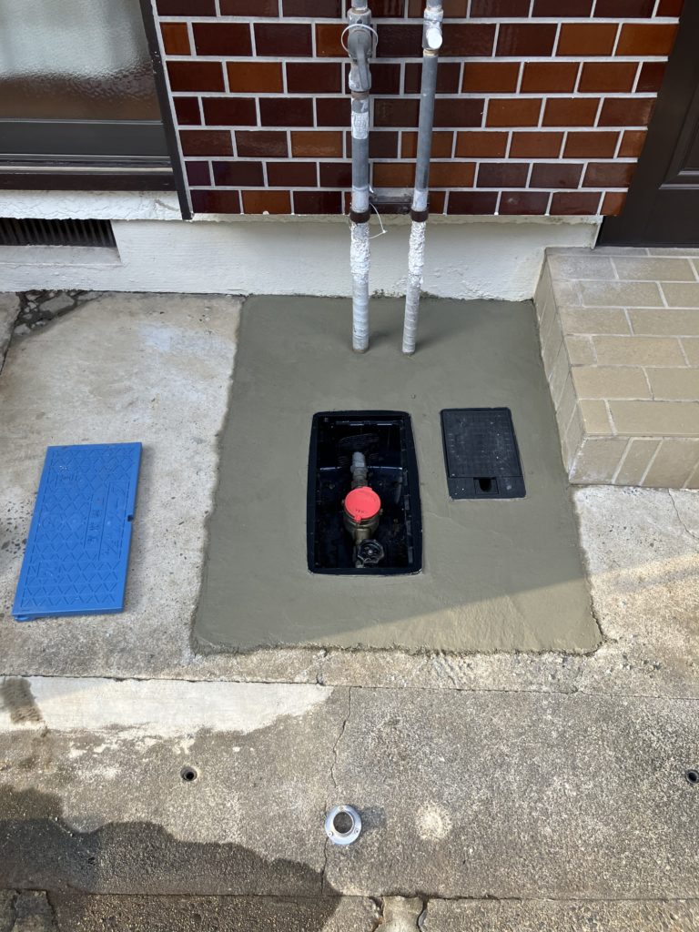 そんなわけで1日目は漏水修理まで行い、後日メーターボックスと散水栓ボックスを用意して交換し、モルタル補修をして完了です。
