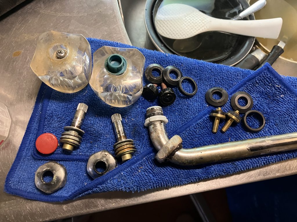 column&newsコラム&ニュース詳細 > コラム・ニュース > ニュース > 台所蛇口漏水修理 2025.03.03台所蛇口漏水修理 こんにちは、仙波です。 今回は管理会社様からのご依頼で、賃貸マンションの台所の蛇口の水漏れです。 現場を確認すると、ハンドルタイプの壁付き蛇口で止水不良を起こしているようです。 ハンドルを分解していき、中のパッキン交換で無事直りました。 センスイではこういった細かい修理も承っております。 水回りでお困りの際はお気軽にご相談下さい。