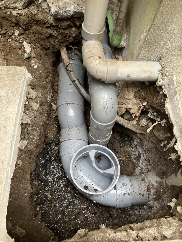column&newsコラム&ニュース詳細 > コラム・ニュース > ニュース > 排水桝交換 2025.07.03排水桝交換 7月に突入しました、もう今年も半分が終わりました。。仙波です! 今回のご依頼は、排水桝交換、です。 古くなったコンクリート桝のインバートと呼ばれる排水の通り道の部分が破損し、詰まり易くなってしまっているようです。 既存のコンクリート桝を撤去し、前後の配管を調整しながら新しい塩ビ製の小口径桝に交換です。 雨水管やら給水管やらガス管などが微妙に干渉しているため、狭くてやりにくかったですが、勾配もしっかりと取れ流れも良好です。 排水管の工事もお任せ下さい!
